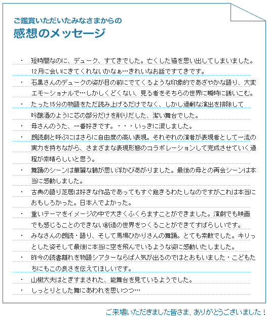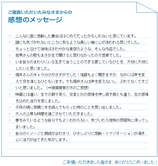 公演のアンケートの一部を抜粋して公開致します。