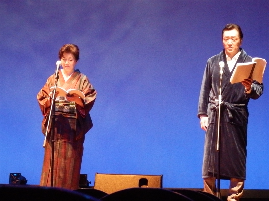 - 手紙のやりとりによる、元夫婦の男女の心の動きがよく伝わる、素晴らしい公演でした。尺八の演奏も素敵でした。